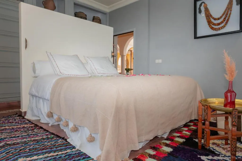 La chambre Dalia offre un refuge paisible, où le calme est au cœur de l’expérience. Elle est conçue pour ceux qui recherchent un endroit tranquille pour se ressourcer. La chambre donne sur une terrasse privée, un véritable sanctuaire de sérénité, parfaite pour se détendre en toute tranquillité.